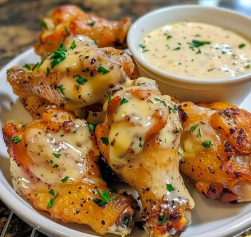 Turn your heat down low, and let simmer for about 3 minutes or until it slightly thickens, then add in your Parmesan cheese. Mix well, then add your chicken wings. Give it a nice toss and plate them