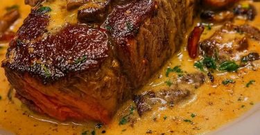 Steak with Haunted Bourbon Garlic Cream Sauce