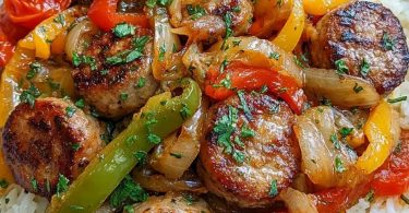 SAUSAGE, ONION, BELL PEPPERS & TOMATOES OVER RICE