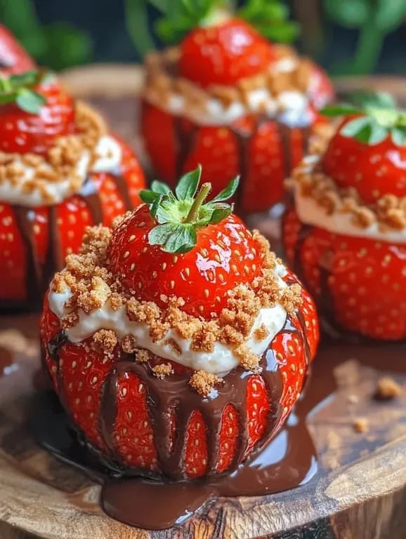 Rinse the strawberries under cool water, pat them dry, and gently remove the leafy tops. Using a small paring knife or a strawberry huller, carefully carve out a shallow cavity about ½‑inch deep, keep