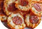 Arrange the pepperoni slices, cooked sausage crumbles, bell peppers, and onions on top of the cheese.