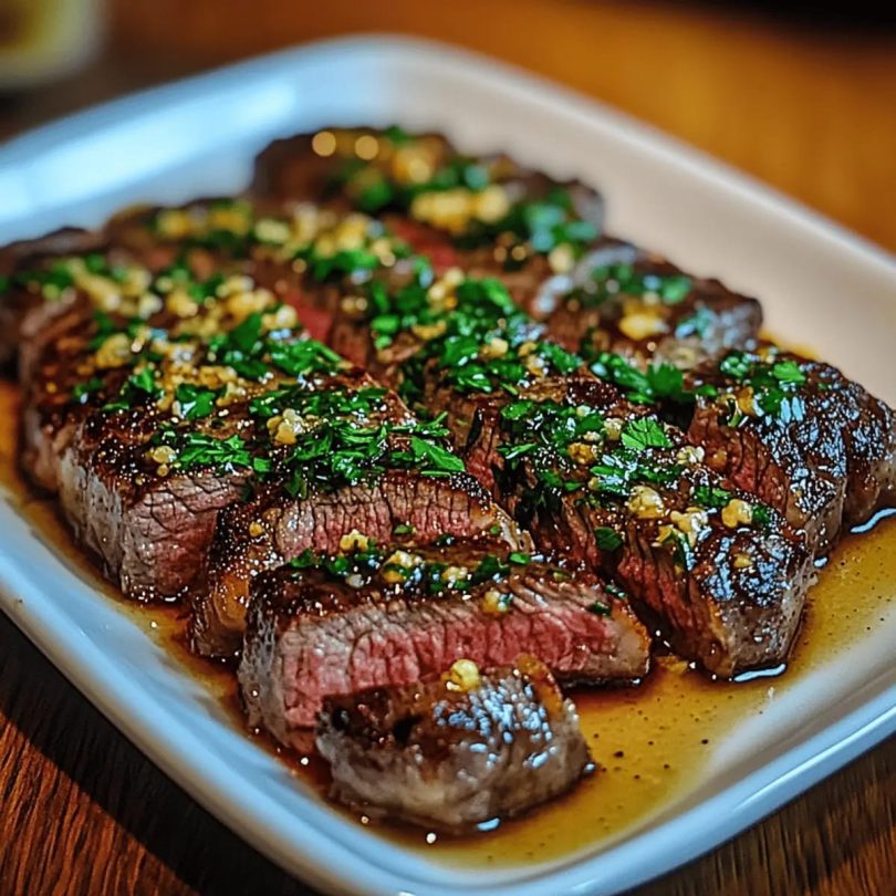Let the steaks rest for 5 minutes after cooking, then drizzle the garlic butter sauce over the steaks and serve immediately