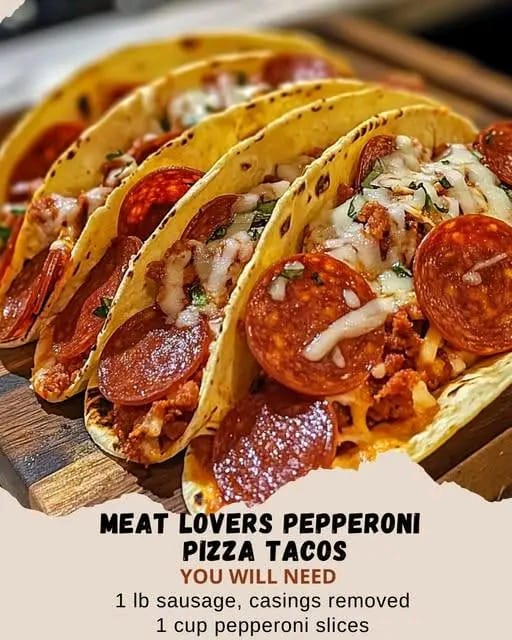 Integrate pepperoni, bacon, sausage, green bell pepper, onion, and seasonings into the pan with beef. Allow to sauté for 5 minutes.