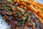 Remove steaks from the pan and set aside on a plate (they’ll finish cooking in the sauce).
