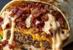 Bacon Cheeseburger Burrito with a Pile of Bacon and...